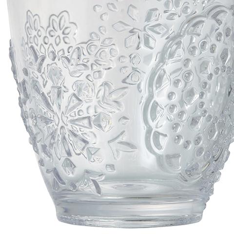 A classy tumbler with round lace pattern on it. Small size which fits women hands. Can be used to store small goods.Specifications