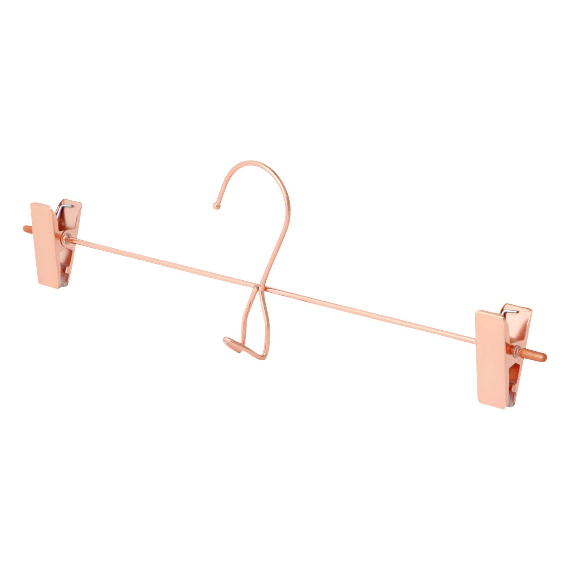 A set of 3 fancy bottom hangers in rose gold. Great for hanging your clothes with style. You may hang your belt on the hook at center to save space. Match it with pink laundry items and add a refreshing touch to your space.Specifications